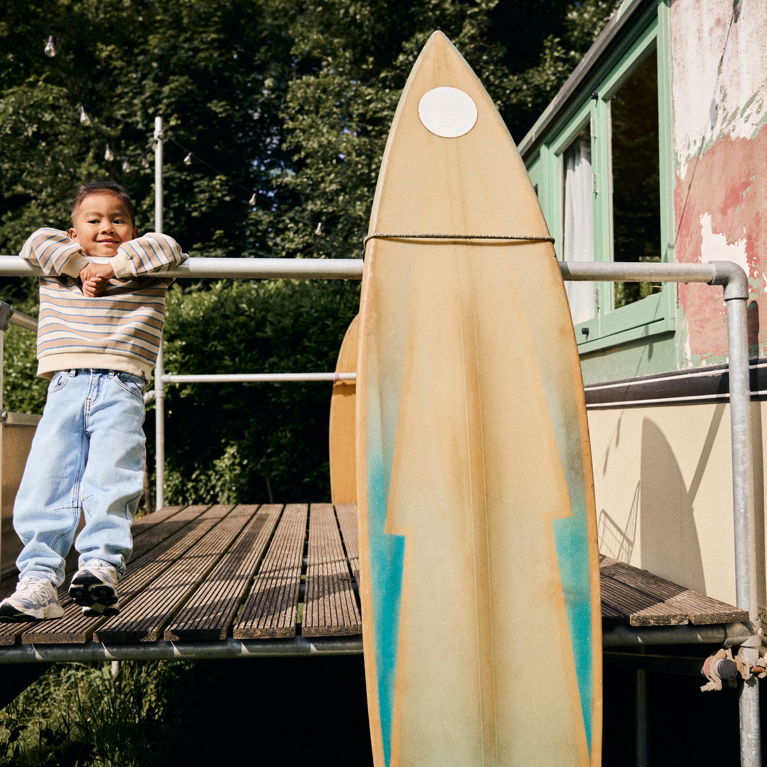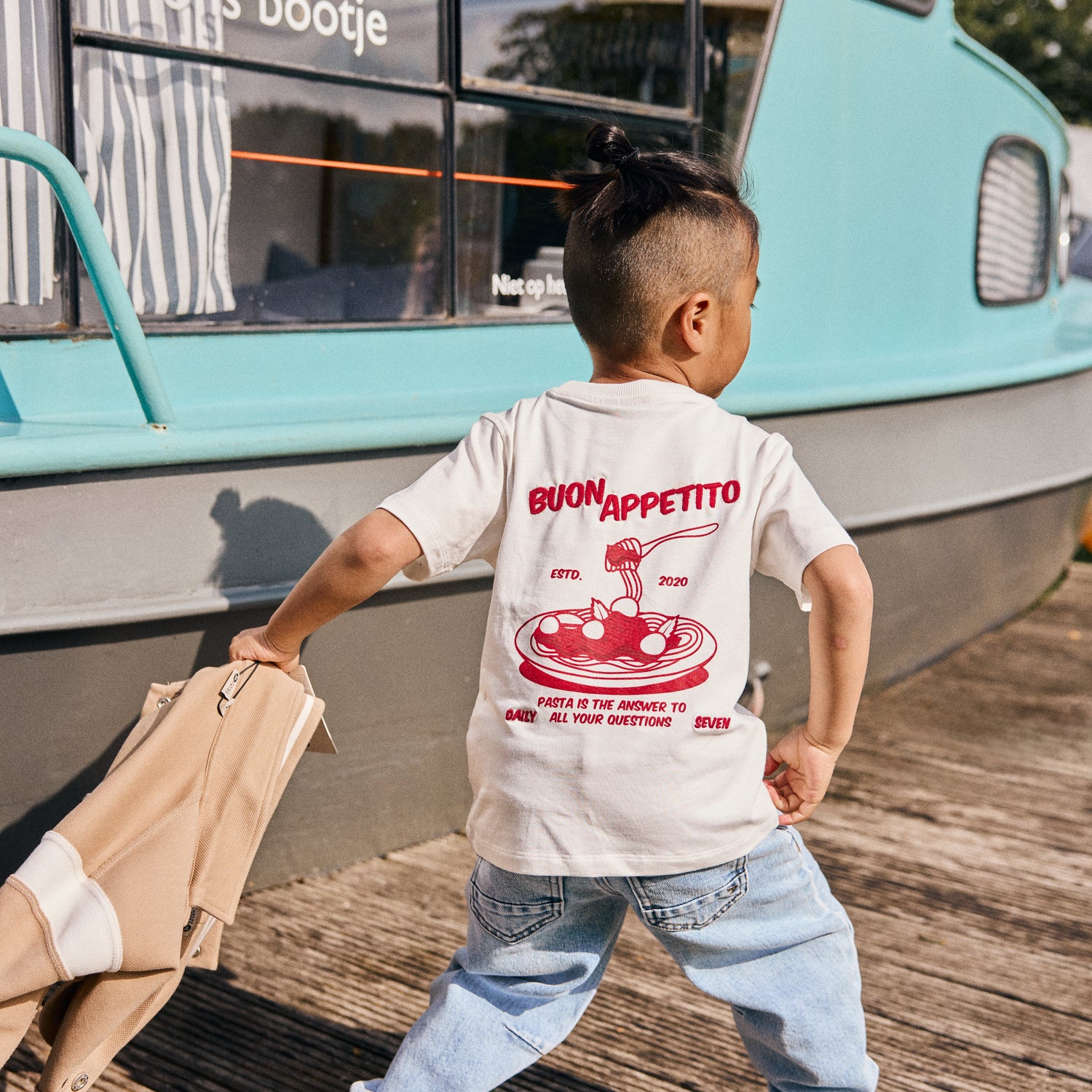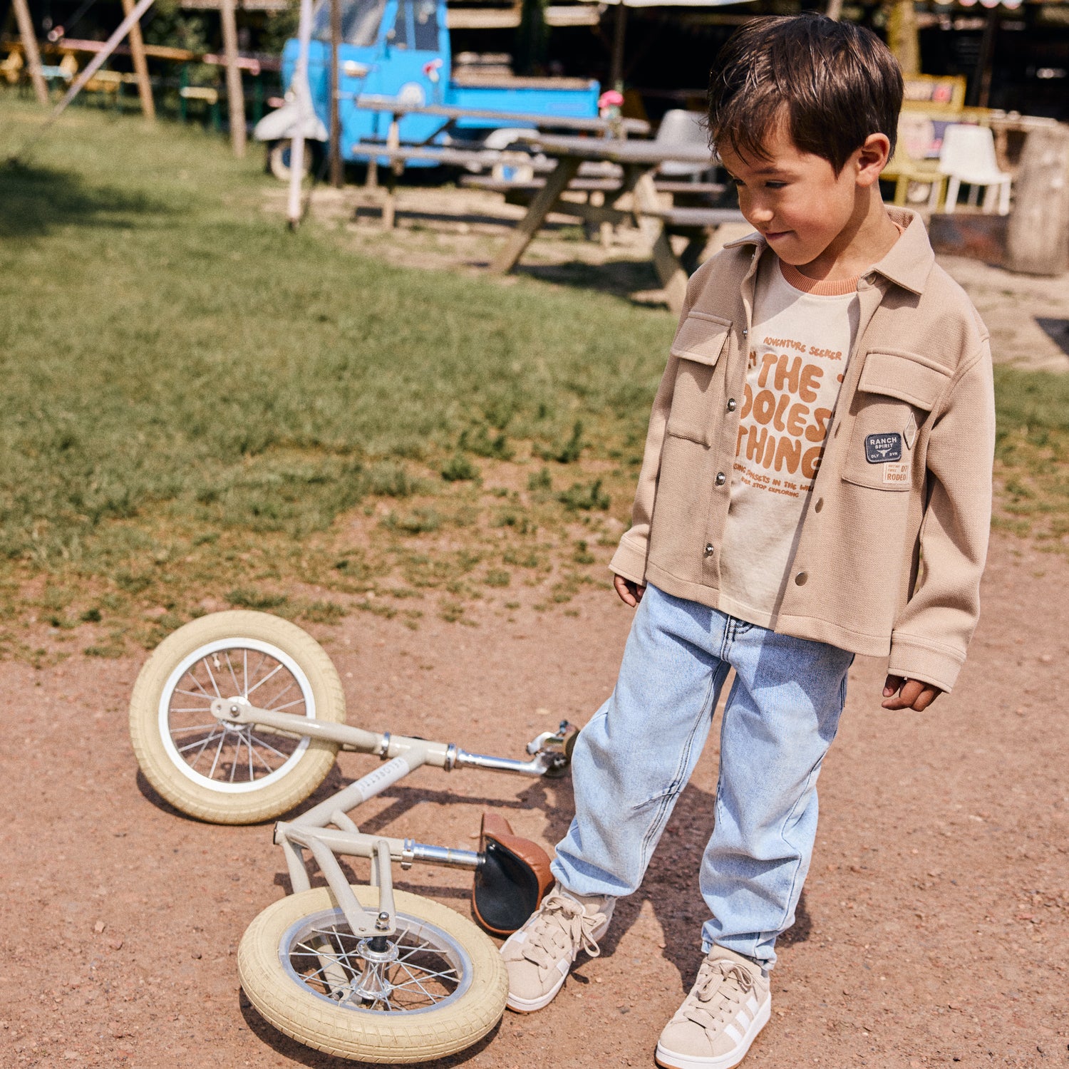 Blauwe jeans, barrel fit.
