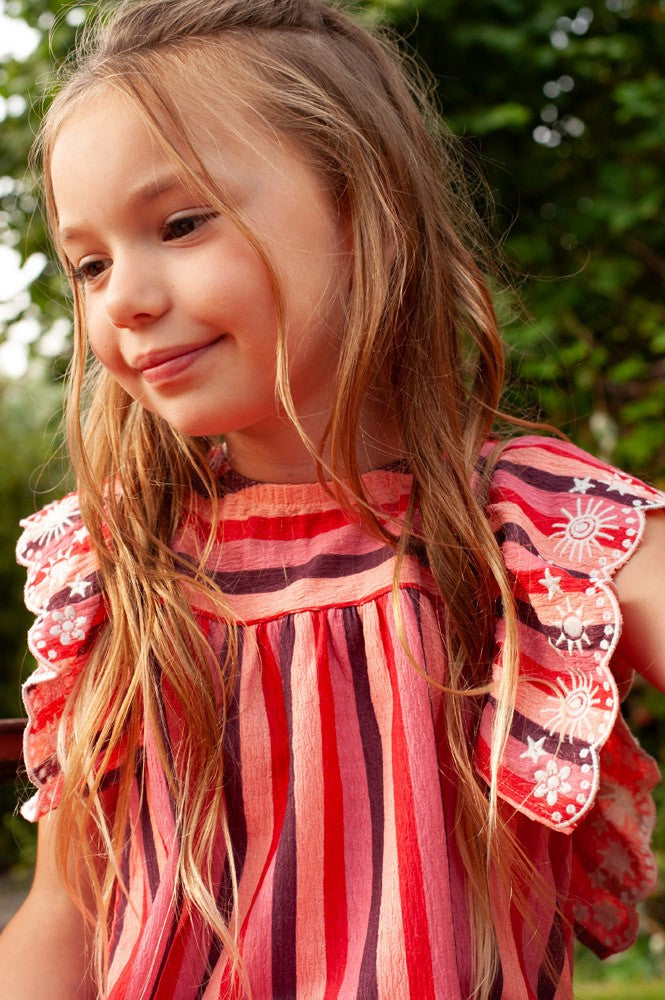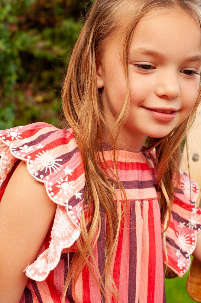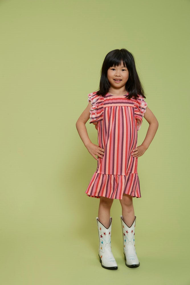 Luchtig jurkje in katoen, ruffle aan de mouwtjes