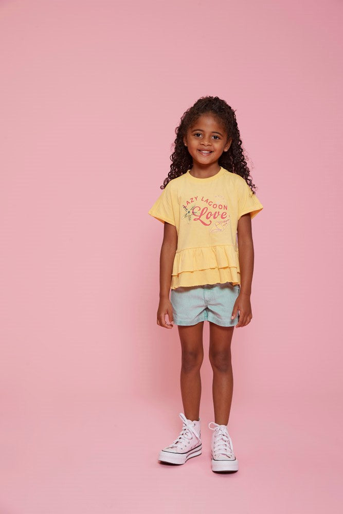 Jeansshort van lichtblauw denim, met verstelbare elastiek in de taille