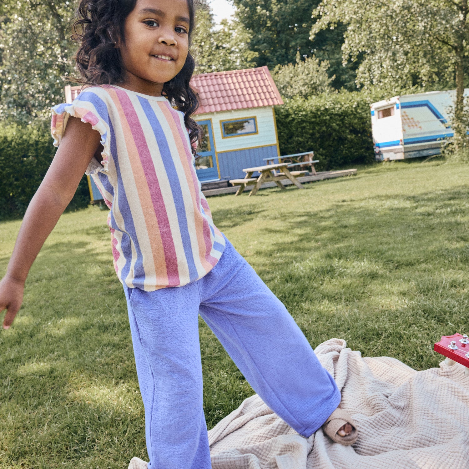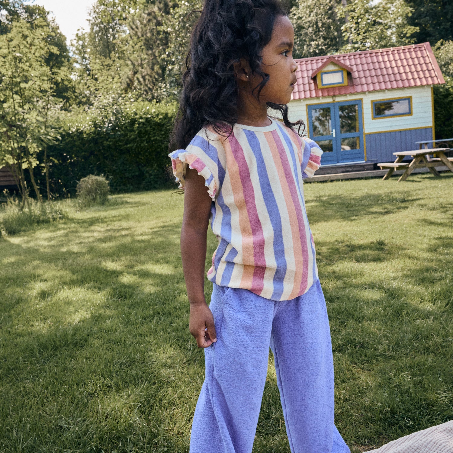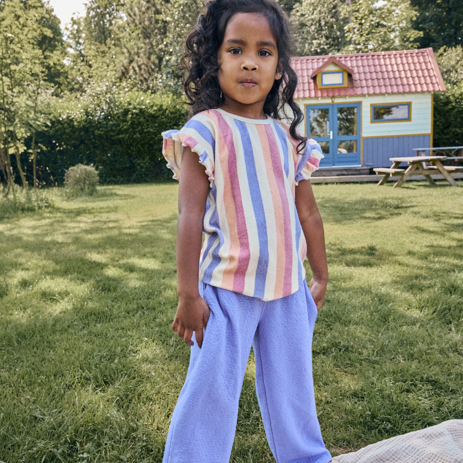 T-shirt in badstof met vrolijke streepjes